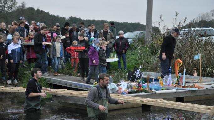 „Es dürfen nur Kinder und Jugendliche teilnehmen“, sagte Wehrführer Mathias Hirsch. Aber Eltern und Großeltern dürften beim Bau der Schiffe helfen. „So viele wie heute waren noch nie hier“, meinte er mit einem zufriedenen Blick in die Runde, in der sich nach dem Wettbewerb die einen an Bratwurst, Bier, Kaffee oder am Feuer erfreuten, die anderen ihren Kindern beim Knüppelkuchen backen oder Anzünden von Fackeln halfen. „Viele nutzen das Lichterfest inzwischen als Gelegenheit, sich als Familie zu treffen oder um alte Bekannte wiederzusehen und mit ihnen zu quatschen“, wusste der Wehrführer. „Hier vorn, das sind zum Beispiel alles ehemalige Mitarbeiter der früheren LPG.“